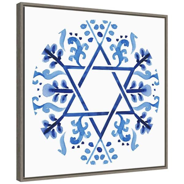 22 in. Canvas Indigo Hanukkah Collection C Christmas Holiday Framed Box Wall Art