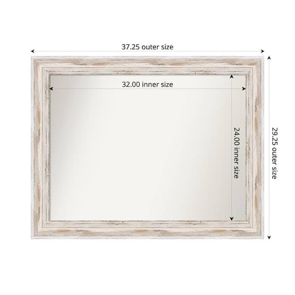 Alexandria Whitewash 37.25 in. x 29.25 in. Custom Non-Beveled Wood Framed Bathroom Vanity Wall Mirror