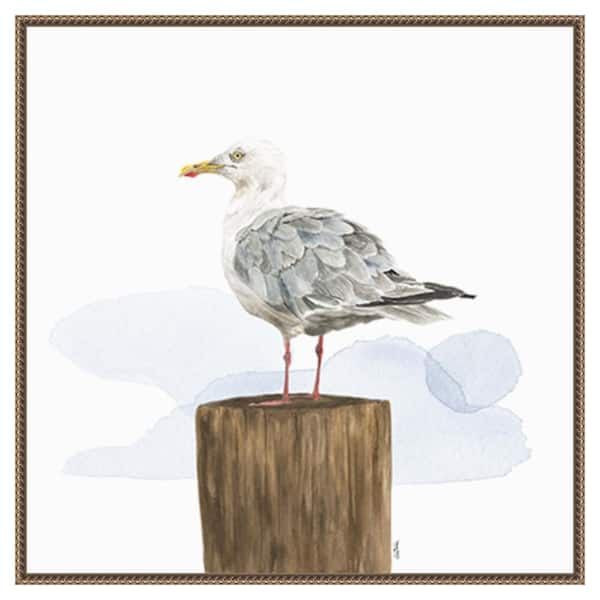 Birds of the Coast on White IV by Tara Reed 30 in. W x 30 in. H Canvas Float Frame in Bronze