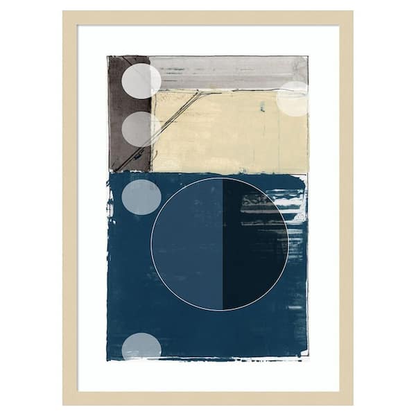 This artwork features a blend of geometric shapes with a prominent large circle at the center, surrounded by smaller circles. The composition is divided into two main color blocks a dark blue bottom section and a lighter upper section with textured shades of beige and gray. The interplay of color and shape creates a sense of balance and modernity. This framed art print was created by Cartissi and printed by Amanti Art in Madison WI. The print is giclee printed using fade-resistant inks for picture-perfect detail and incredible depth of color and finished with a 100% real wood frame. Individually made using traditional custom framing techniques, it has the quality you would expect from your local frame shop.