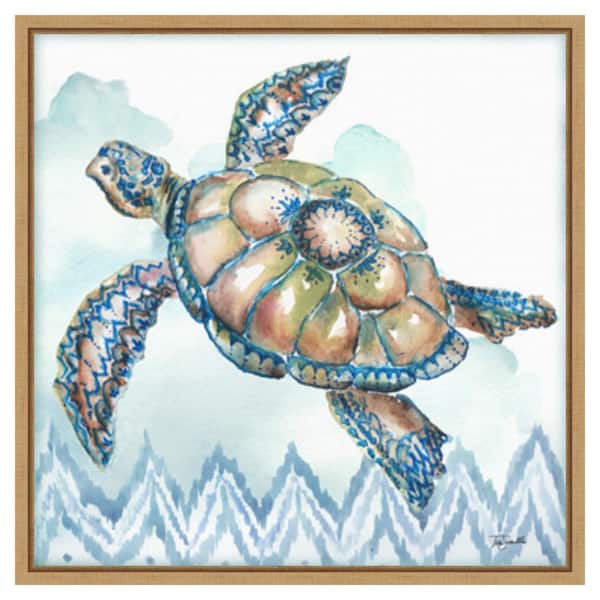 Boho Shells I Sea Turtle by Tre Sorelle Studios 22 in. W x 22 in. H Canvas Float Frame in Brown
