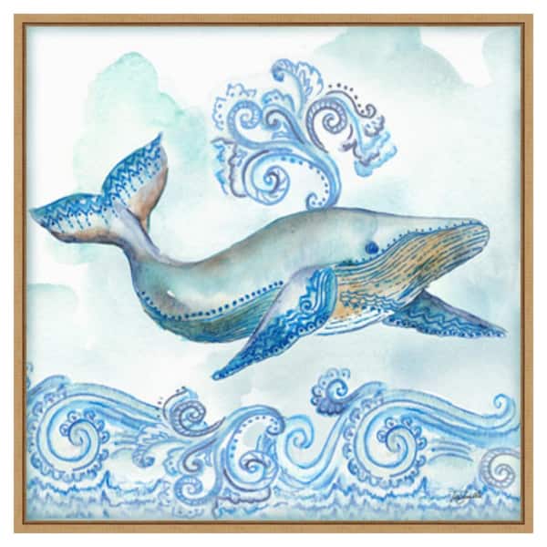 Boho Shells II Whale by Tre Sorelle Studios 30 in. W x 30 in. H. Canvas Wall Art Print Framed in Brown