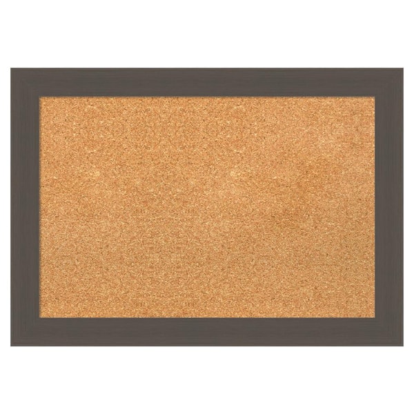 Brushed Pewter Natural Corkboard 28 in. x 20 in. Bulletin Board Memo Board