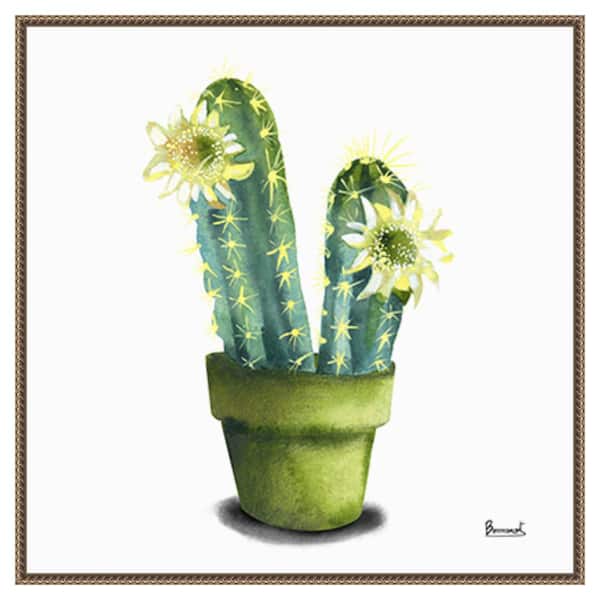 Cactus Flowers II by Bannarot 30 in. W x 30 in. H. Canvas Wall Art Print Framed in Bronze