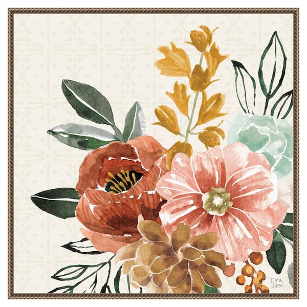 Chic Flowers by Dina June 1 Piece Floater Frame Canvas Giclee Nature Art Print 30 in. x 30 in.