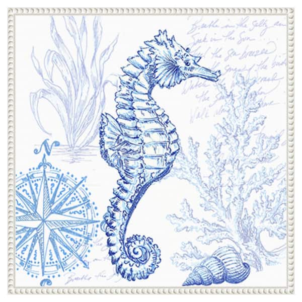 Coastal Sketchbook Sea Horse by Tre Sorelle Studios 22 in. W x 22 in. H. Canvas Wall Art Print Framed in White