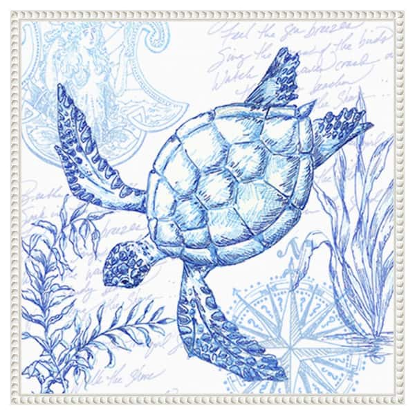 Coastal Sketchbook Turtle by Tre Sorelle Studios 22 in. W x 22 in. H Canvas Float Frame in White
