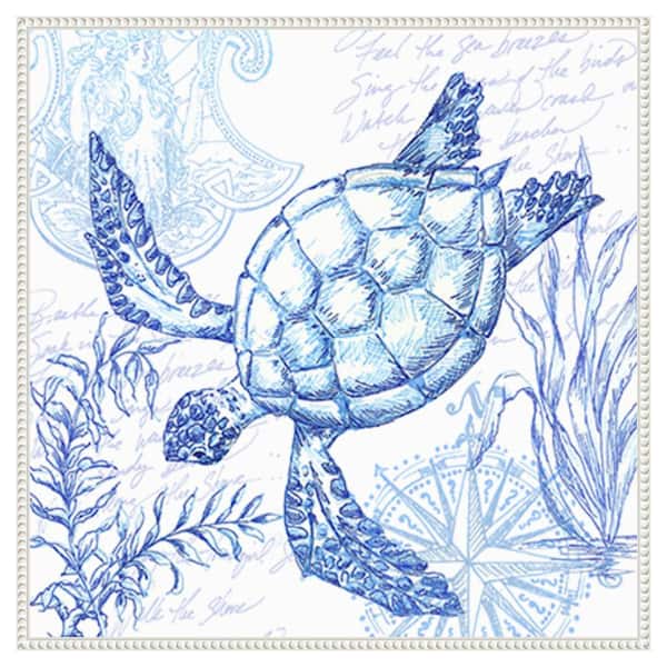 Coastal Sketchbook Turtle by Tre Sorelle Studios 30 in. W x 30 in. H. Canvas Wall Art Print Framed in White