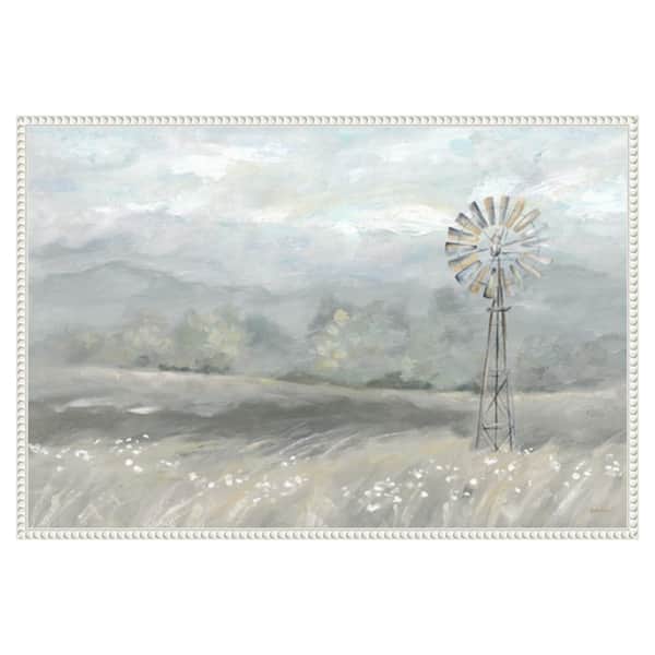 Country Meadow Windmill by Cynthia Coulter 33 in. W x 23 in. H. Canvas Wall Art Print Framed in White