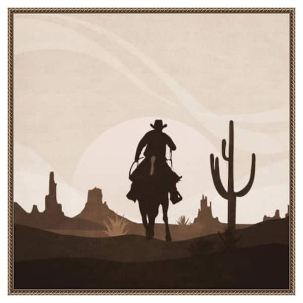 Cowboy Sunset by Emel Tunaboylu 1 Piece Floater Frame Canvas Giclee Animal Art Print 30 in. x 30 in.