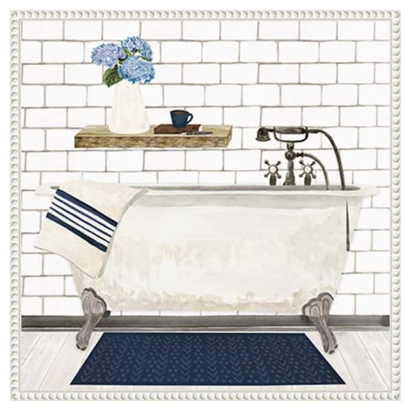 Farmhouse Bath I Tub by Tara Reed 22 in. W x 22 in. H. Canvas Wall Art Print Framed in White