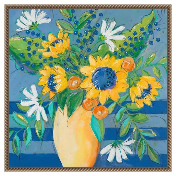"Floral Bursts Among the Blue" by Krinlox 1-Piece Floater Frame Giclee Home Canvas Art Print 22 in. x 22 in.