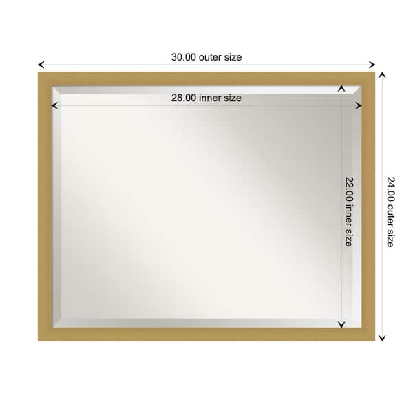 Grace 30 in. x 24 in. Modern Rectangle Framed Brushed Gold Narrow Bathroom Vanity Mirror