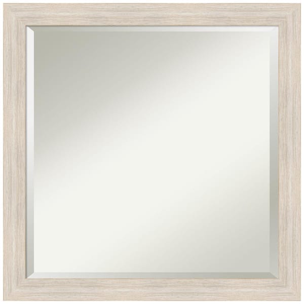 Hardwood Whitewash Narrow 23 in. W x 23 in. H Wood Framed Beveled Wall Mirror in White