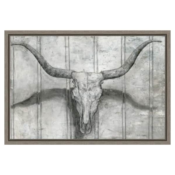 Longhorn by Marie Elaine Cusson 23 in. W x 16 in. H. Canvas Wall Art Print Framed in Gray