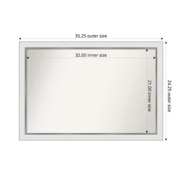 Medium Rectangle Satin White Silver Casual Mirror (24 in. H x 35 in. W)