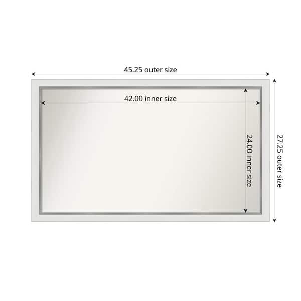 Medium Rectangle Satin White Silver Casual Mirror (27 in. H x 45 in. W)