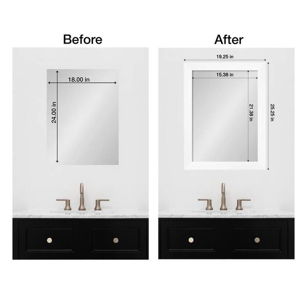 Mirror Makeover Cabinet White Narrow 19.25 in. W x 25.25 in. H Bathroom Mirror Frame Border Kit-Fits a 18 x 24 Mirror