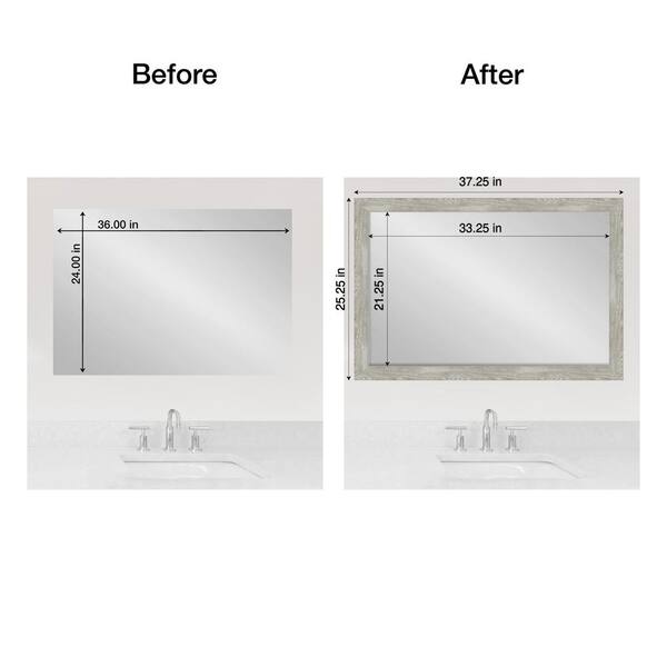 Mirror Makeover Dove Greywash Narrow 25.25 in. W x 37.25 in. H Bathroom Mirror Frame Border Kit-Fits a 24 x 36 Mirror