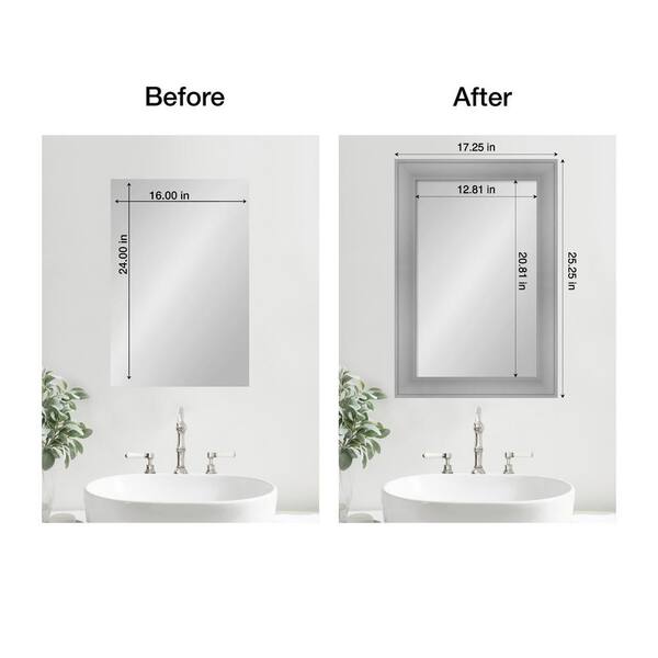 Mirror Makeover Flair Polished Nickel 17.25 in. W x 25.25 in. H Bathroom Mirror Frame Border Kit-Fits a 16 x 24 Mirror