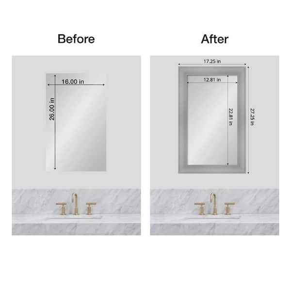Mirror Makeover Flair Polished Nickel 17.25 in. W x 27.25 in. H Bathroom Mirror Frame Border Kit-Fits a 16 x 26 Mirror