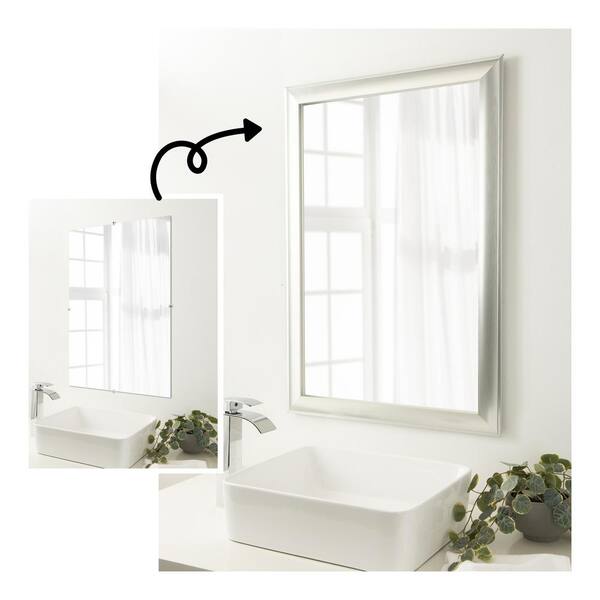 Mirror Makeover Flair Polished Nickel 25.25 in. W x 25.25 in. H Bathroom Mirror Frame Border Kit-Fits a 24 x 24 mirror