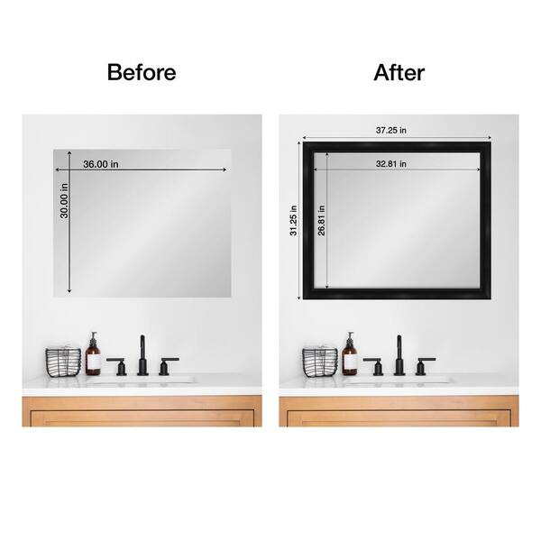Mirror Makeover Grand Black Narrow 31.25 in. W x 37.25 in. H Bathroom Mirror Frame Border Kit-Fits a 30 x 36 mirror