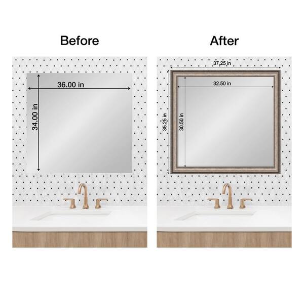 Mirror Makeover Lyla Ornate Silver 35.25 in. W x 37.25 in. H Bathroom Mirror Frame Border Kit-Fits a 34 x 36 Mirror