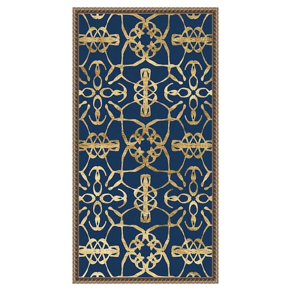 Motif on Blue X by Alonzo Saunders 14 in. W x 27 in. H. Canvas Wall Art Print Framed in Bronze