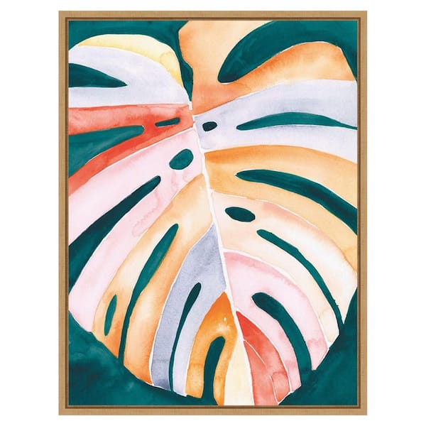 Multicolor Monstera by Jennifer Paxton Parker 1 Piece Floater Frame Canvas Giclee Abstract Art Print 30 in. x 23 in. W