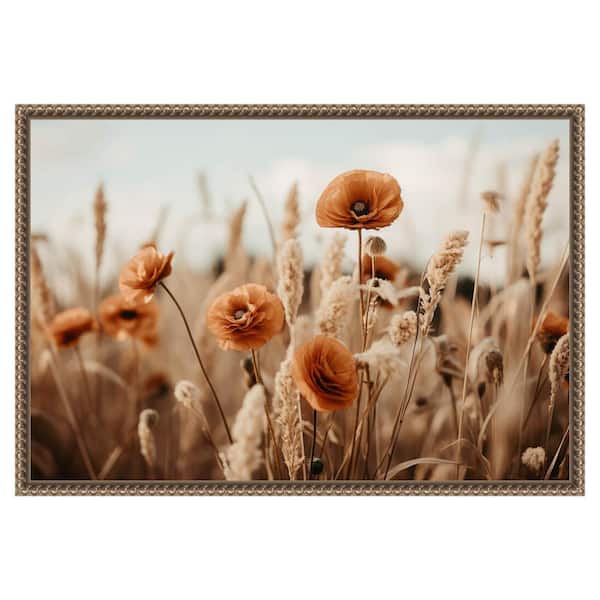 "Orange Poppy Field" by Treechild 1-Piece Floater Frame Giclee Nature Canvas Art Print 16 in. x 23 in.