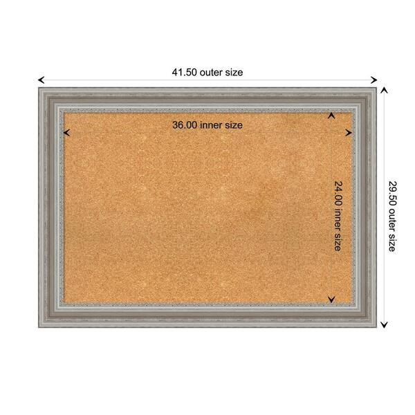 Parlor Silver 41.50 in. x 29.50 in. Framed Corkboard Memo Board