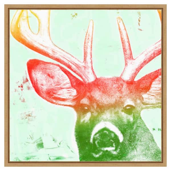 Portrait of a Deer rainbow by Marie Elaine Cusson 22 in. W x 22 in. H. Canvas Wall Art Print Framed in Brown