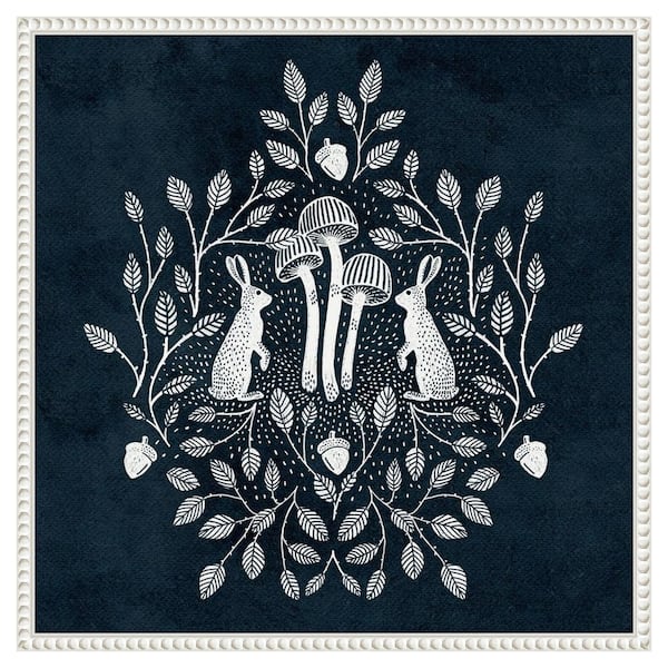 Rabbits and Mushrooms V by Katie Oshea 22 in. W x 22 in. H. Canvas Wall Art Print Framed in White