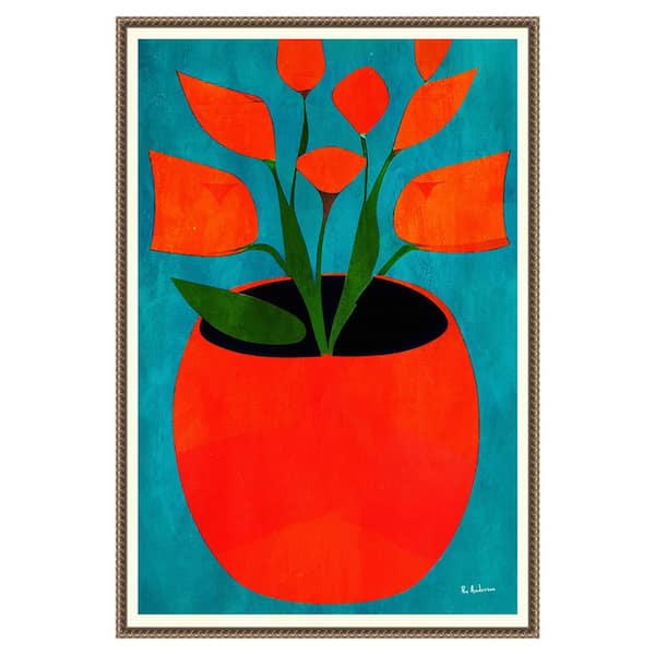 "Red Blossoms" by Bo Anderson 1-Piece Floater Frame Giclee Abstract Canvas Art Print 33 in. x 23 in.