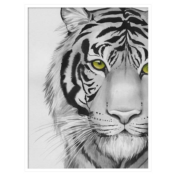 Snow Tigre II by Grace Popp 31 in. W x 41 in. H. Wood Framed Wall Art Print Framed in White