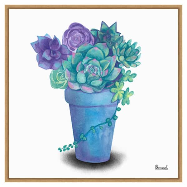 Turquoise Succulents IV by Bannarot 30 in. W x 30 in. H. Canvas Wall Art Print Framed in Brown