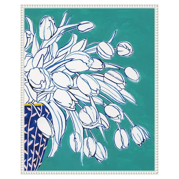 Turquoise Tulip Bouquet II by Grace Popp 23 in. W x 28 in. H. Canvas Wall Art Print Framed in White