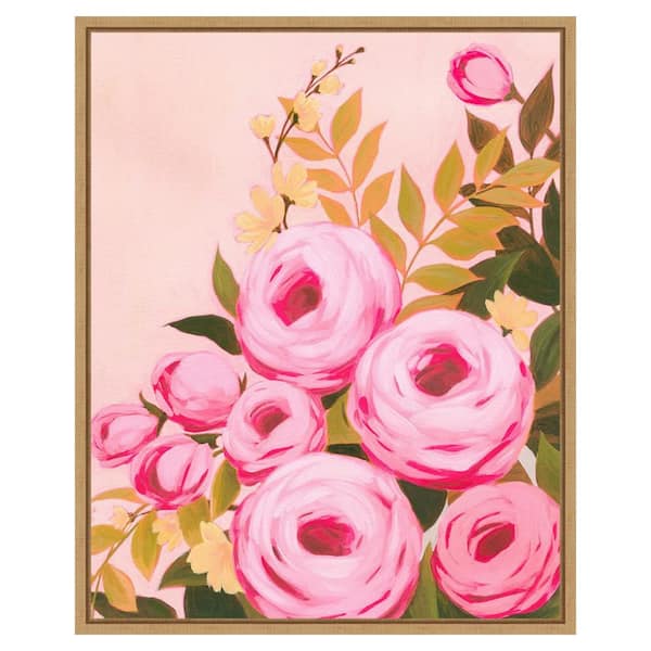 Vibrant Roses II by Grace Popp 23 in. W x 28 in. H Canvas Float Frame in Brown