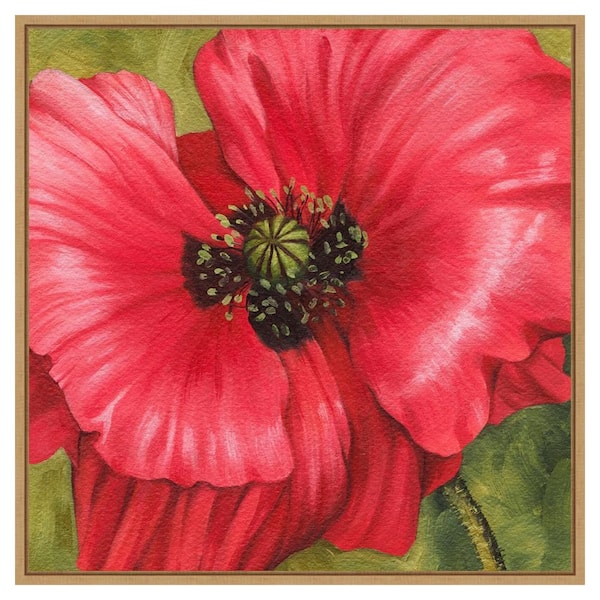 Vivid Poppy II by Grace Popp 30 in. W x 30 in. H. Canvas Wall Art Print Framed in Brown