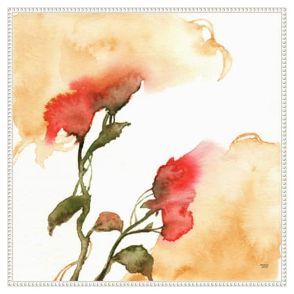 Watercolor Floral Yellow and Red II by Andrea Bijou 30 in. W x 30 in. H Canvas Float Frame in White