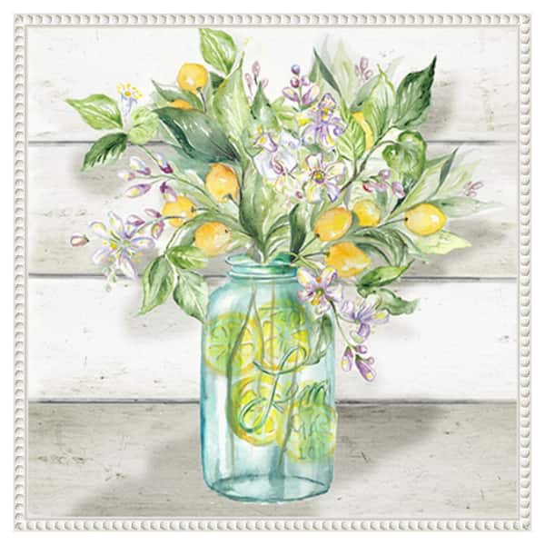 Watercolor Lemons in Mason Jar Shiplap by Tre Sorelle Studios 22 in. W x 22 in. H. Canvas Wall Art Print Framed in White