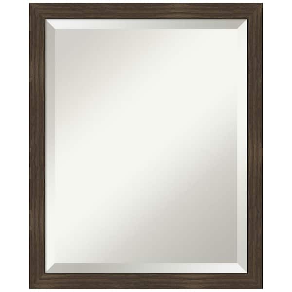 Woodgrain Stripe 18 in. x 22 in. Beveled Casual Rectangle Wood Framed Wall Mirror in Brown