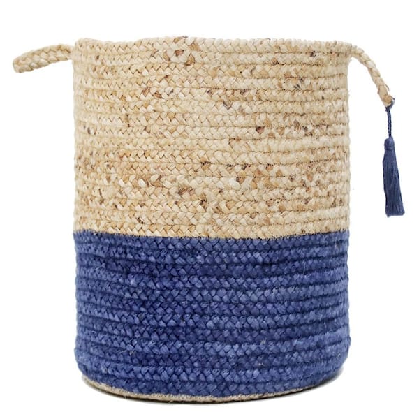 Amara Tan / Blue Two-Tone Natural Jute Woven Decorative Storage Basket with Handles