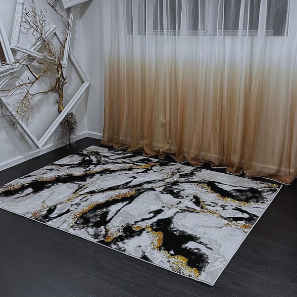 "Tali" 4' x 6' Gray/Black/Gold Abstract Area Rug