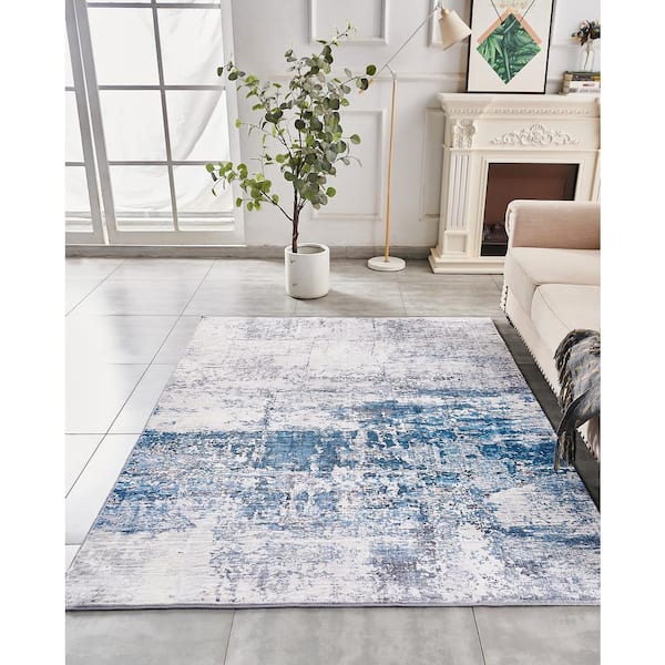 Zara Contemporary Gray/ Turquoise 3 ft. x 5 ft. Washable Super Soft with Abstract Design Area Rug