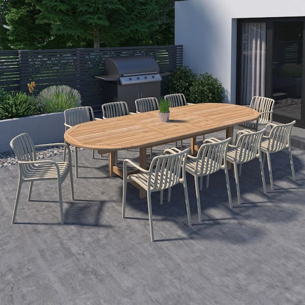 Elmina 11-Piece Solid Teak Wood 100% FSC Oval Patio Dining Set Sand
