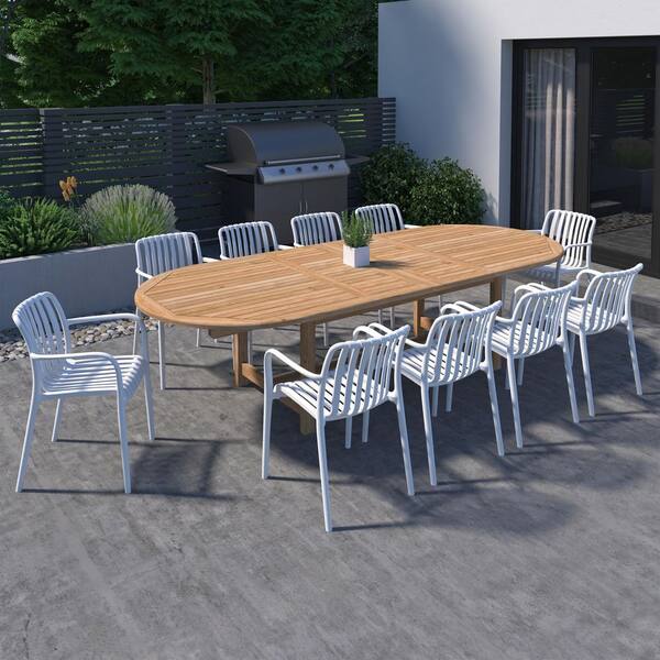 Elmina 11-Piece Solid Teak Wood 100% FSC Oval Patio Dining Set White