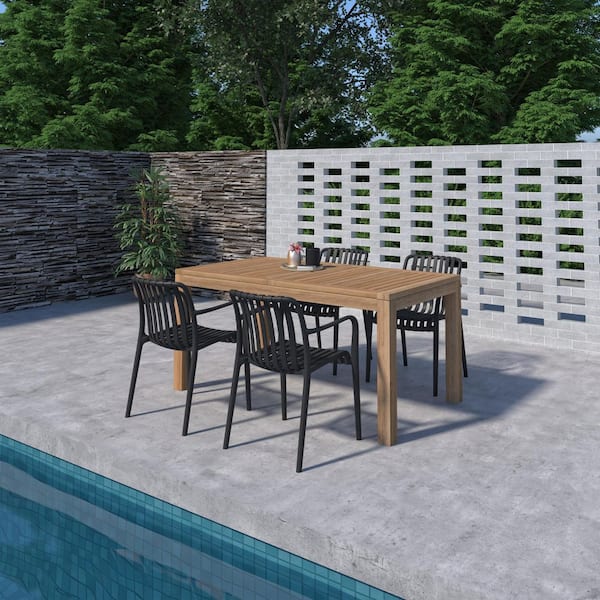 Georgette 5-Piece Solid Teak Wood 100% FSC Rectangular Patio Dining Set Black
