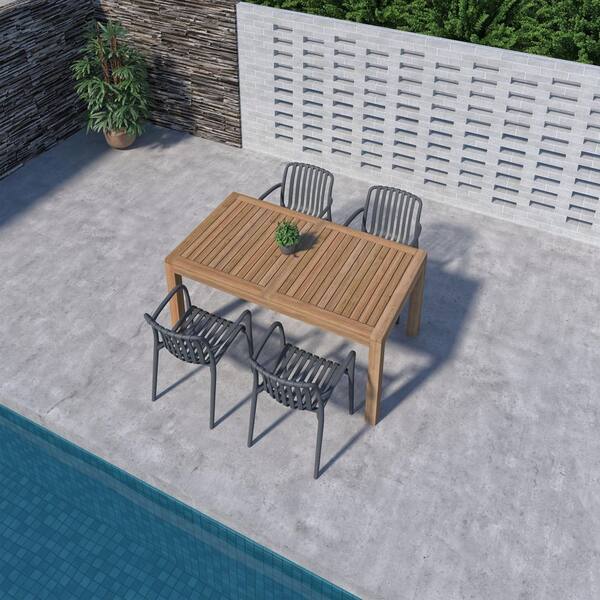 Georgette 5-Piece Solid Teak Wood 100% FSC Rectangular Patio Dining Set Grey